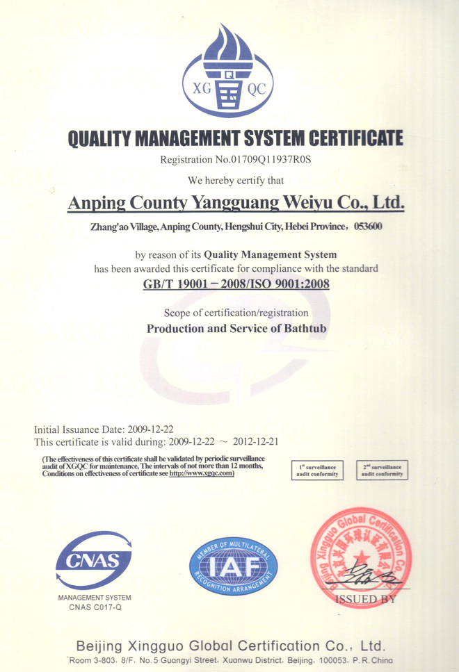 陽光衛(wèi)浴獨(dú)立式鑄鐵浴缸質(zhì)量擔(dān)保書